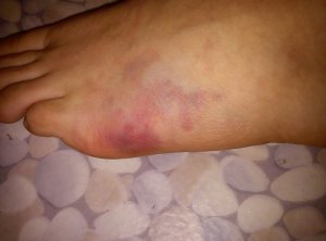 Skadade min fot igår när jag råkade göra en felbelastning… Så nu är den så här vacker…