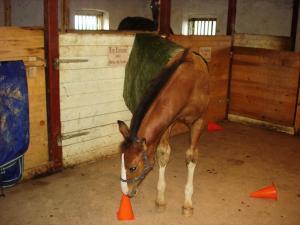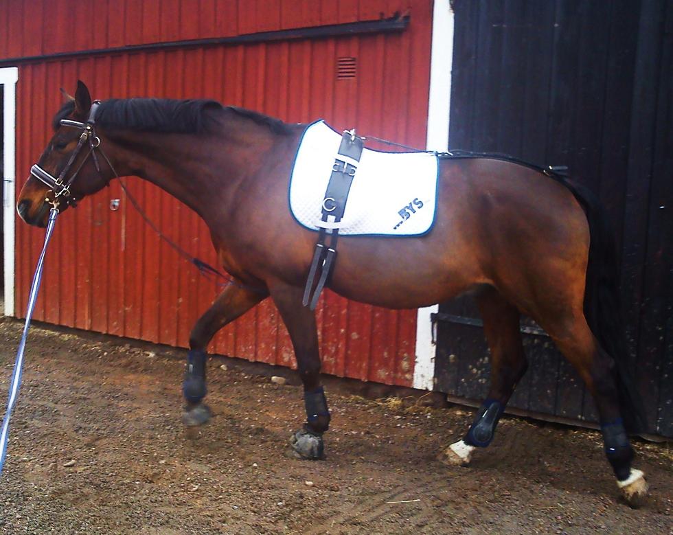 Jobbade Blixten inspänd med chambon för första gången och hindrade på så vis honom från att kasta för mycket med huvudet och sänka ryggen som han gärna gör annars. Han jobbade på riktigt fint och avslappnat till större delen av passet. Fick bland annat till en jättefin, lösgjord och balanserad trav!