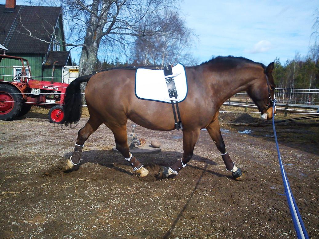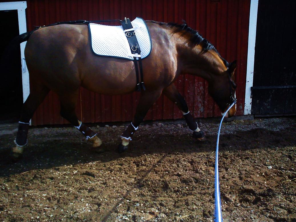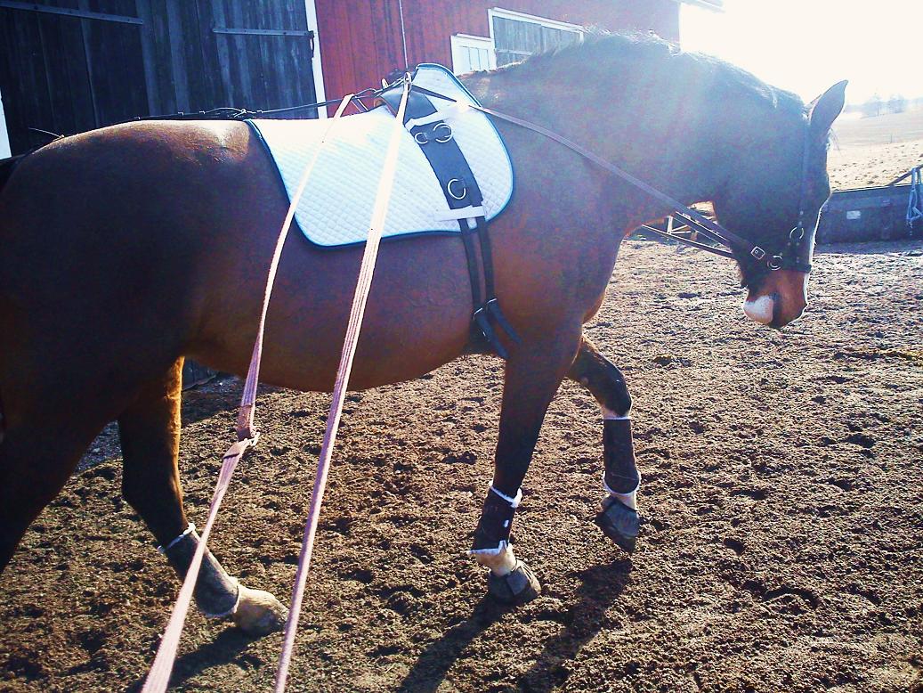 Idag fick Alice jobba av sig lite. Hade egentligen bara tänkt ”rasta av” henne, men hon uppvisade en del spänningar så beslöt att arbeta henne för att försöka lösa upp dem. Så det blev först longering oinspänd och sedan tömlongering. Det tog lite tid, men sen lossade det till stor del och hon kunde jobba på fint. Har laddat upp bilder från idag (se galleriet via hemsidan), här kommer dock smakprov!