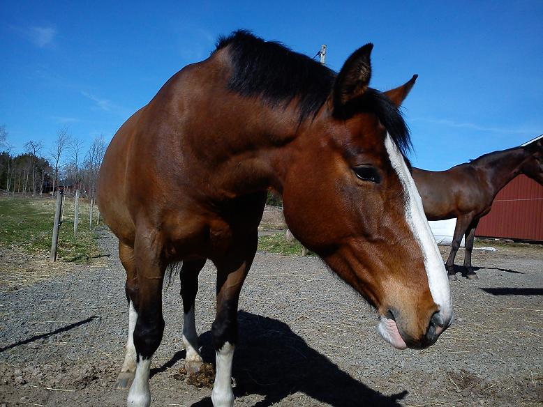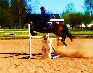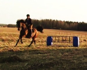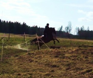Jaa… en galen Blixten och en Alice vars hjärna tagit semester vore väl kanske en lämplig summering av dagens bravader. Jag började med ett hopp-pass med Blixten och det med en skräckblandad förtjusning. Nä då, men nästan i alla fall. Hahah! Han var helt tossig och drog som hejsan. Det är roligt att han tycker hoppning är roligt, men det ska ju finnas någon form av lydnad och kontroll i det hela! Bitvis låg han i kurvorna, han busade och hade sig och tyckte dessutom att vi skulle hålla omhoppningstempo. Det tyckte ju däremot inte jag. Förstås. Men, jag försökte göra det bästa av situationen och det gick väl trots allt hyfsat i alla fall. En del missar blev det (några rivningar, några stopp och några hopp där jag sitter som en usel fälttävlansryttare), men en hel del som gick bra också! Maxhöjd på passet blev 1.20.