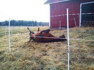 Något som däremot inte gick bra för fem öre var mitt dressyrpass med Alice. Jag vet inte vad det tog åt henne, men hon hade helt klart inga höns hemma! Jag kände inte ens igen henne, det var liksom inget som gick fram hur jag än försökte. OK för att alla har dåliga dagar, men det här var löjligt! Hon kunde för sitt liv inte svänga ordentligt, utan hade till och med sprungit rakt in i staketet om inte jag hade tagit i ordentligt så att hon tvingades svänga. Hon var helt väck!