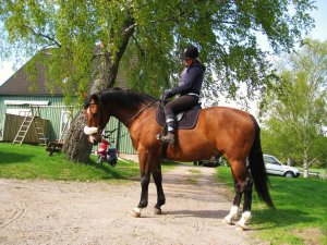 Sara var här och tog sig en tur på Dacke som tyckte det var roligt att få komma ut igen. Han trivs bra med att få göra något istället för att bara gå och skrota i hagen.