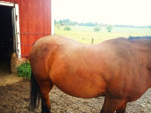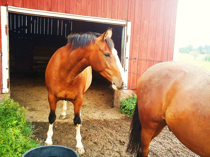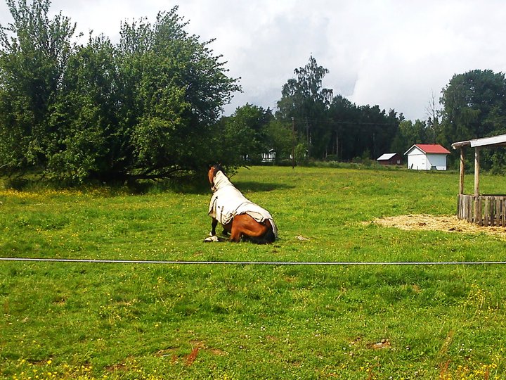 Jag kan knappt mocka utan att börja gråta och idag när jag skulle tömma skottkärran såg gick det inte! Jag grät för det gjorde så ont så jag fick be Magnus hjälpa mig. Undrar hur länge detta tänker hålla i sig??? Jag hoppas att det släpper snart för jag kan ju inte göra någonting när det är så här! Suck. Och Alice som verkligen behöver hållas igång… Blixten också för den delen. Nu har det ju dessutom regnat en hel del igen så jag kan inte ens löslongera dem i min ”ridbana” som jag hägnat in här hemma. Suck igen.