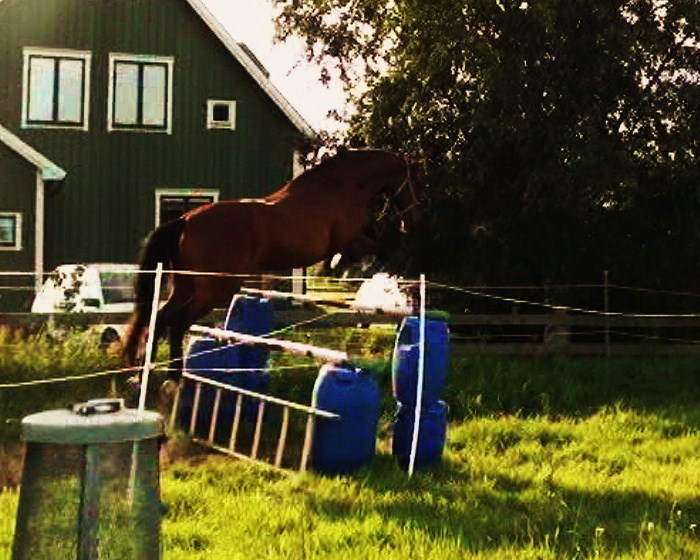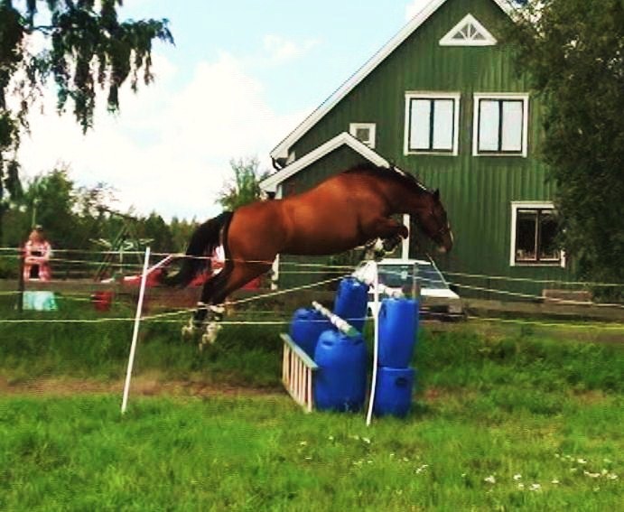Till min stora glädje kom det väldigt lite regn och har hållit en hög temperatur så underlaget var bra idag också! Så jag passade på att fortsätta med löshoppningsarbetet, dock lite högre idag (maxhöjd på ca 1.30 m). Vet dock inte om de var trötta efter gårdagen, eller om det var värmen eller bägge delar eller något annat, men de var bägge inte alls lika på hugget som igår. Alice var ovanligt oengagerad och Blixten var i det närmaste lat! Men, några bra språng fick de till trots detta, även om de bägge hoppade sämre än de brukar. Bilder kommer att laddas upp i galleriet (pixbox) och eventuellt kommer även videor framöver. Tills dess – här kommer smakprov: