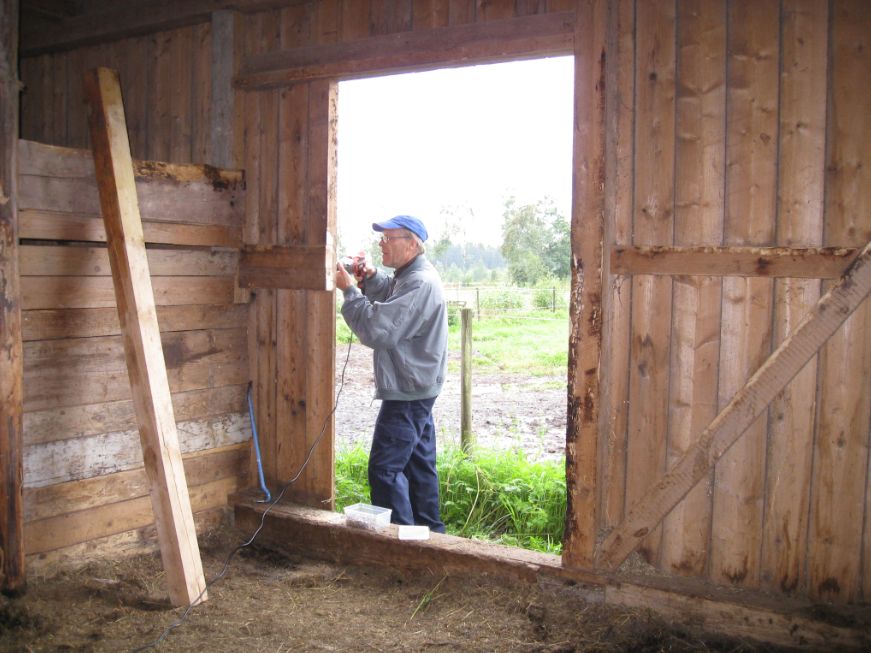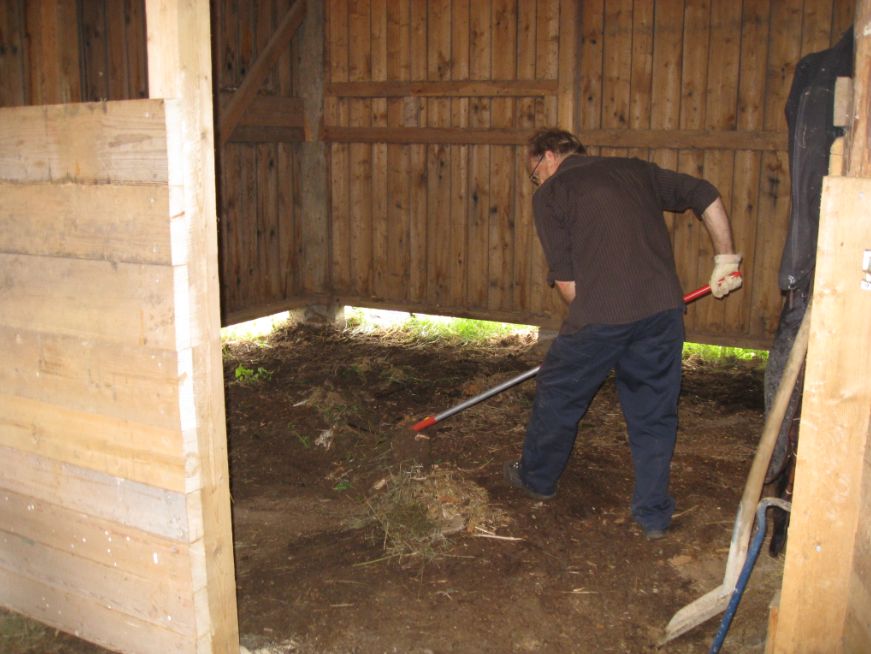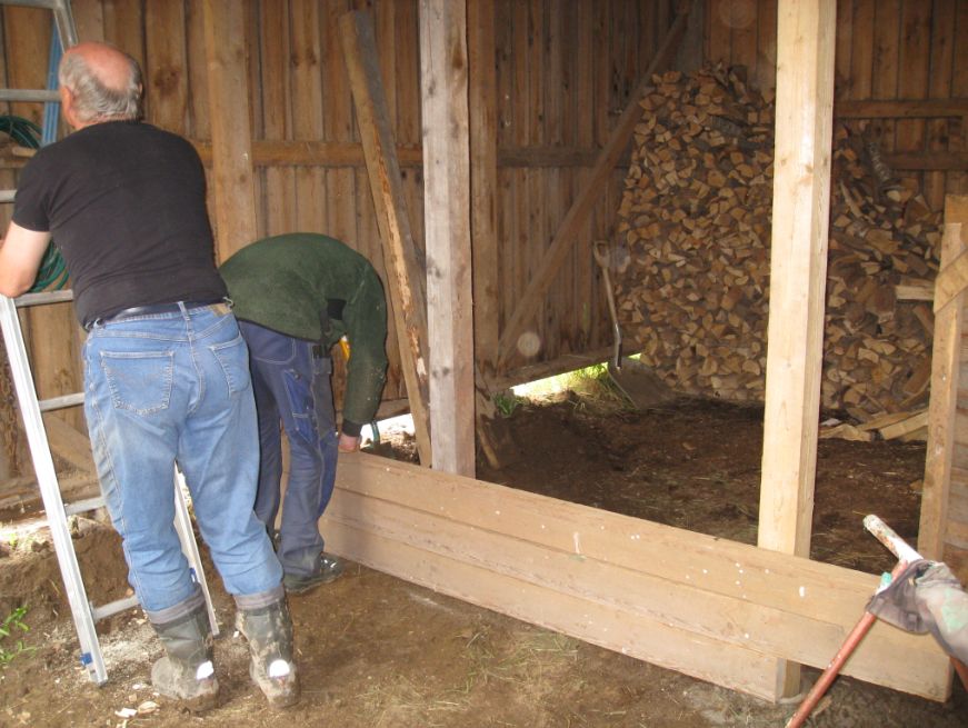 Jag flyttade på nästan all ved förutom en del som jag fick hjälp med av pappa. Men det var i alla fall min huvudsakliga uppgift förutom att vara byggchef – heheh – och hjälpreda till pappa. Grabbarna gjorde själva byggarbetet. Pappa tog upp en öppning samt gjorde en dörr nedanför fönstret i den befintliga boxen och Magnus och hans pappa Ulf gjorde boxfronten till den nya boxen.