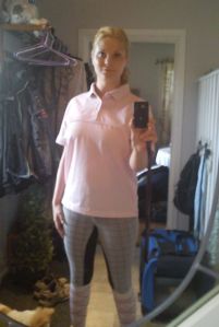 Så här såg vi ut för dagen! Matchade i grått och rosa (hennes pannband har fyra rader rosa strass).