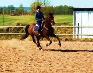 I flera dagar nu har jag dragits med migrän. Den vägrar att släppa! Det går upp och ner, men släpper aldrig helt. Idag försökte jag göra något trots detta och det fick bli ett kort, intensivt longerpass över stockar och rishinder. Longering, ja… big surprise. Jag gör inget annat nuförtiden känns det som. Hoppas jag mår bättre snart så att jag kan rida någon gång!! Jaja, stumpan var duktig i alla fall.