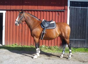 På väg till Karlskrona gjorde vi ett stopp på Börjes. Där hittade jag en ”magkudde” i mjuk latex och len insida. Tänkte den skulle vara bra till Alice som är lite känslig om sin mage. Troligtvis har hon blivit känslig på grund av att hon varit väldigt rund så länge och även om jag har långa gjordar med resår så har det ändå varit lite av en kamp att ens komma till första hålet vid sadling. Att hon spänner ut sig har ju gjort det hela värre (därför som man knappt kommer till första hålet). Så nu har jag inhandlat både gjordförlängare och den här mjuka ”magkudden”. Så jag hoppas ju givetvis på att hon kommer tycka att sadlingarna blir lite behagligare framöver.