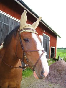 …så kan man pyssla lite istället! Magen var inte alls med mig idag och då funkar det inte för mig att rida (dels för att det gör för ont och dels för att jag blir så fruktansvärt trött att jag helt enkelt inte orkar). Så jag roade mig istället med att piffa till två pannband och en nosgrimma!