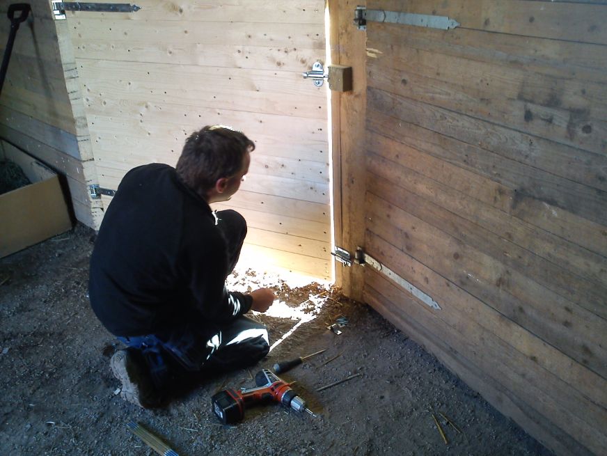 Magnus var även snäll och skruvade upp innerdörrarnas skjutreglar (har ju sådana på ytterdörrarna). Vill ha två lås på varje dörr av säkerhetsskäl. Själva boxlåset ska flyttas uppåt vid tillfälle.