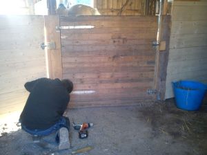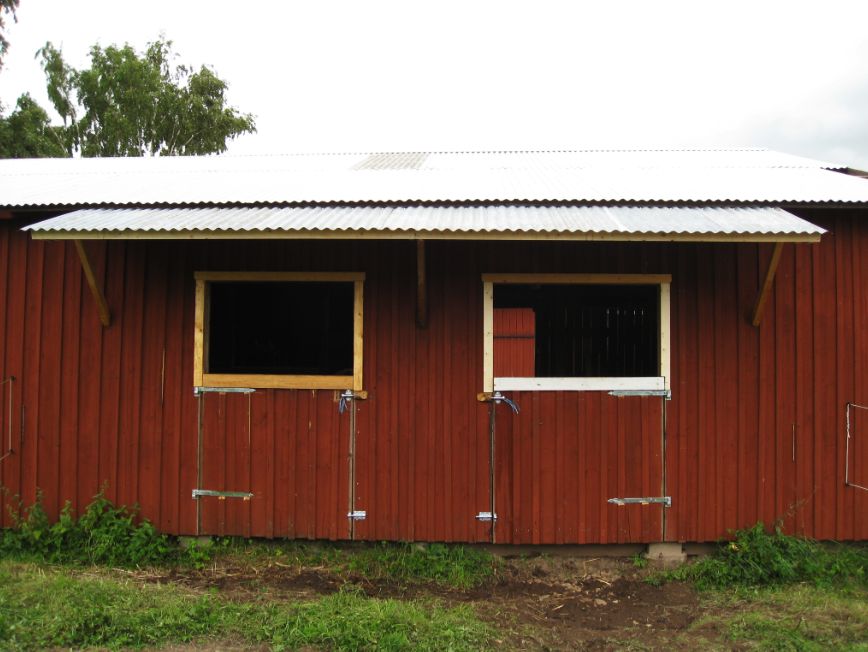 Jag målade även fönsterramen på ”Alices box” så fick stänga ute henne från boxen åtminstone något dygn så färgen fick chans att torka. Även ramen runt Olles boxfönster ska målas, men går inte just nu eftersom man inte kan ”kasta ut” honom hur som helst.
