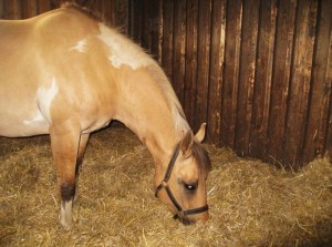 Som det är nu har Olle redan fri tillgång på halm av god kvalitet, så han behöver aldrig gå hungrig. Sedan får han även hö av årets skörd tre gånger om dagen (tidigare fyra, men nu får han tre istället) för att vänja in magen på gräs igen.