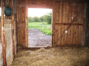 Här nedan syns i alla fall målningen samt Olles lilla hage. Ni får bortse från det fula stängslet, men allt är ju bara lite provisoriskt uppkastat eftersom Olles hage ju ska bli större sen och Alice avgränsning fick dras på ett sådant sätt att hon inte kommer åt att nosa på Olle genom staketet (så de ej fastnar i banden om de slår med benen, nosa på varandra får de göra INNE i stallet) och för det andra dras lite ful runt om så hon ej kommer åt att riva i fiberdukskanten. Hon är ju för bedrövlig stumpan, kan ju inte låta någonting vara!