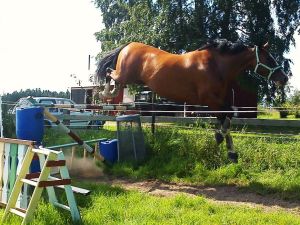 Jahapp. Då har vi påbörjat en ny månad igen. Jösses vad tiden går fort! Augusti har börjat med strålande solsken och det är ju trevligt (om än lite jobbigt att det blir SÅ varmt)! Tack vare det varma, torra vädret kan jag ju använda min ”ridbana” utan problem. Idag fick Alice löshoppa (maxhöjd för dagen blev ca 1.33 m) vilket hon (som vanligt) tyckte var roligt, men jobbigt på grund av värmen och insekterna.