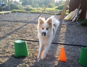 ”Tränade” lite agility med Gizmobusen idag. Han tyckte det var jättekul! Han fullkomligt flyger över hindren och var ganska duktig på slalom också.