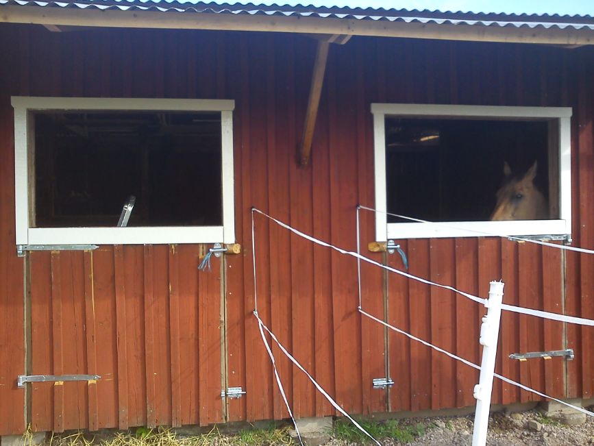 Har sålt lite saker idag, alltid skoj! Jag blir av med sådant som jag inte kan eller vill använda längre, får pengar för det istället och någon annan blir glad för sakerna! Perfekt! Utöver detta tog jag tag i målningen idag (uteboxarna). Hann inte färdigt för jag började lite sent på dagen och som vanligt tar allting längre tid än man tror. Jag satte även svetsat nät runt stöttorna till utskjutstaket som bitskydd. Hästar är ju som bekant riktiga bävrar så det är bäst att skydda viktiga delar av bygget så gott man kan. Ett tätt metallnät skyddar riktigt bra!