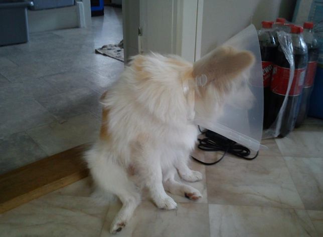 Idag kastrerades Gizmo och får således gå med tratt/krage nu i hela tio dagar! Han är INTE kompis med den där kragen och har varit allmänt miserabel hela dagen, stackars liten! Jag hoppas obehaget släpper snabbt, det är jobbigt att se sin bebis må så dåligt.