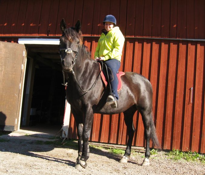 Fick givetvis ont i höfterna efter att ha suttit för länge i dressyrsadeln i torsdags. Fy vad trist! Så det blev ingen ridning alls på fredagen utan det blev istället lite annat pysslande. Fixat lite med staketet så att ”ridbanan” ska bli en del av hagen igen för det är en sådan blöt höst att vi ändå inte kommer att kunna nyttja den något mer. Inga bilder från det, men här en bild (eller rättare sagt fyra stycken) på en morgontrött Alice som betar liggandes.