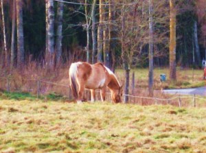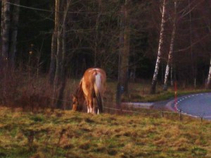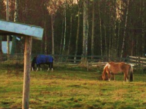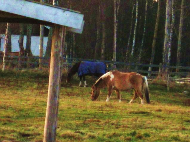 …kommer solsken. Ja, denna gång i alla fall. Fortfarande blåsigt, men i övrigt fint väder. Hästarna njöt i solen som annars lyst med sin frånvaro.
