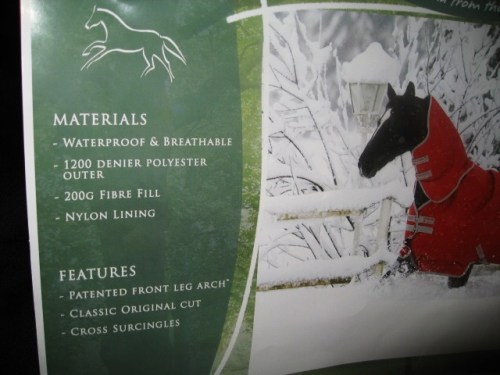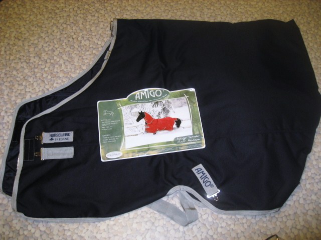 Fyndade ett täcke till Alice idag! Det är ett Horseware Amigo med 200 grams fyllning. Ett övergångstäcke (mittemellan regn- och vintertäcke) är det enda jag saknar till henne så jag blev jätteglad när jag fick syn på detta som var på REA (hade kostat lite över 1500,- annars!) och faktiskt fanns i hennes storlek! Hoppas det passar!