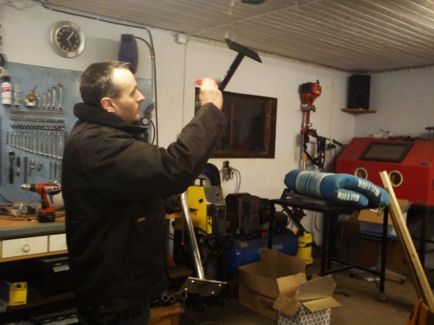 Magnus låg i och förberedde för installationen av ThermoBar-kopiorna. Han gjorde en metallram som ska hålla dem på plats så att hästarna förhoppningsvis inte ska kunna skyffla runt på dem. Han tog ett metallrör och böjde det, svetsade fast fästen och målade den. Han är så duktig! Blir alltid lika imponerad av allt han gör och jag är väldigt tacksam också för att han vill hjälpa mig med sådana saker.