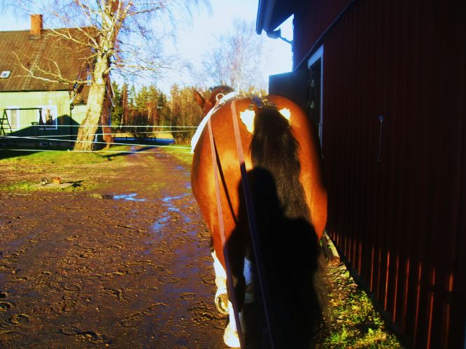 Det blev arbete från marken idag igen, men denna gång i form av: arbete vid hand, tömkörning och tömlongering. Hon blev rejält trött, men det var välbehövligt då det är uppenbart att hon tappat en hel del. Inte bara kondition och muskler utan även ”flytet” i arbetet. Det tog längre tid än vanligt för henne att förstå vad jag menade och även jag kände att jag har kommit av mig i tajmingen med att ge hjälperna, så vi får träna tillbaka vårt samspel helt enkelt. Tog en hel del bilder varav en del kommer att publiceras i ett senare inlägg, men här har ni en Alicerumpa så länge – hahah.
