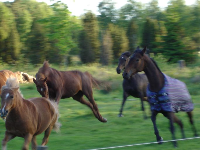 Har ingen rolig ny bild att visa så slänger in en gammal från 2005. På bilden ser ni syrrans hästar till vänster: Rosie, Pontus och Baron samt mina två till höger: Natasha och Lina.