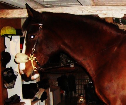 Vad ska jag göra nu då? OK, kan väl ha det som det är, men sidostyckena hamnar ju så tokigt över kindbenet och det är ju inte direkt bekvämt för en häst. Så, jag funderar på om jag ska göra en egentillverkad nosdel, helt enkelt. Antingen det, använda som det är eller sälja.