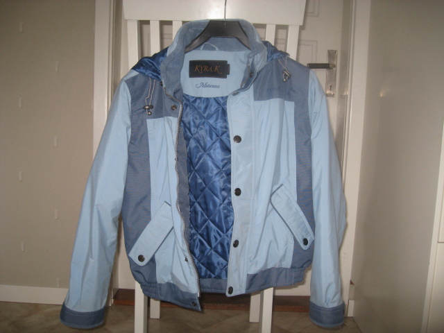 Snygg och i kanonskick då den endast är använd ett fåtal gånger på grund av fel storlek. Dock blev tyvärr luvans resårband konstiga efter tvätt, men fungerar ändå. Luvan går att rulla upp och gömma i kragen. Två fickor i fram samt en innerficka. På bilderna ser luvan ut att ha rosa missfärgning, men det har den INTE! Det är bara blev så på bilderna av någon anledning.