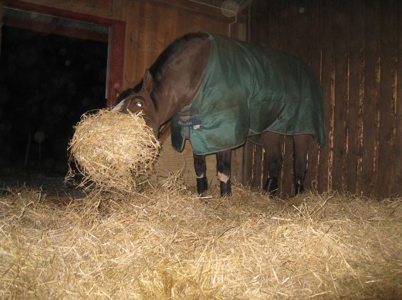 Alice har ju till och från magproblem. Det utlöstes av den kraftiga medicinering hon fick när hon var sjuk och skadad som 3,5-4-åring. Efter det har magen varit känslig och därmed blir hon dålig ibland. Jag har provat några dyra preparat som skulle vara sååå bra, men ingenting fungerade tills jag provade helt vanlig jäst! Jästen fungerar jättebra som stabiliserande. På bara 2-3 dagar ser jag en stor skillnad! Men, hon verkar (kanske) ha instinkten om att även halm kan vara bra för en orolig mage, för trots att det fanns nytt hösilage ute (som hon gladeligen äter av) så valde hon att käka halm en stund.