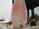 Det verkar ha lite samma samband för förra utbrottet blev i samband med att hon hade sparkat sig själv och hade även mugg samtidigt. Hon sparkade sig ju på bägge bakbenen nu också – kanske därför infektionen fick fäste?