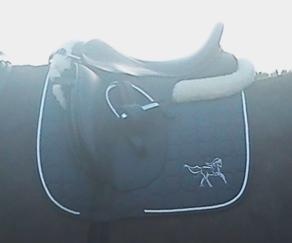 Dagens utrustning gick i grått! Schabraket har en fin Lena Furberg-häst broderad på vänstersidan.