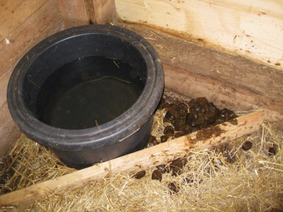 Jag blev lagom road när jag såg detta eftersom det skulle bli svårt att mocka bort, men samtidigt måste jag säga att jag blev ganska imponerad – även om det givetvis var ren tur. Jag vet inte om det är Alice eller Olle, men någon har lyckats lägga en rejäl hög precis bredvid vattentunnan, men inte en enda bajsplutt har hamnat i vattnet!