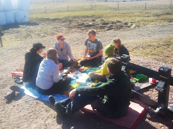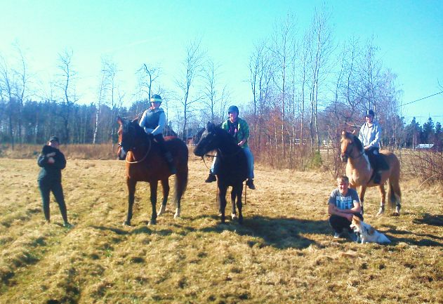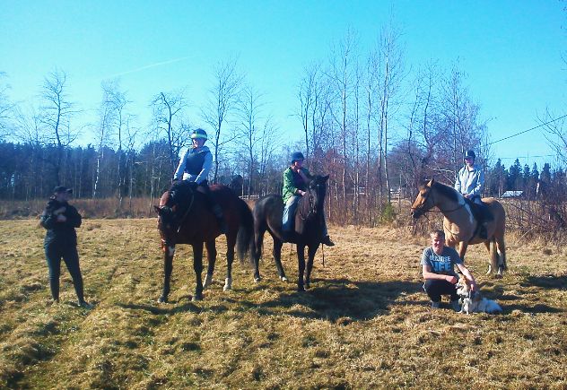 Här kommer lite bilder från vårt stallfika som vi hade i söndags! Efter fikat blev det en skogstur med både hästar och hundar! Angelicas lilla Rizzla var med och Mickans pojkvän var snäll och tog med Gizmo ut på tur eftersom jag inte orkade följa med på grund av att jag var sjuk. Försökte få till en bra gruppbild, men det gick ju inte! Hästarna var inte alls på humör att ha öronen framåt så det blev några halvmisslyckade kort istället – hahah!