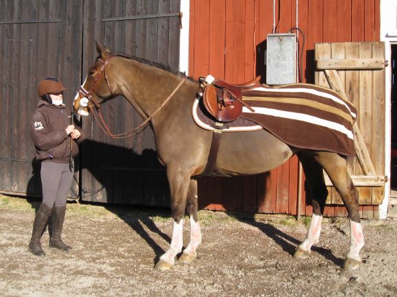 Angelica provade en dressyrsadel som dock inte passade henne så det blir inget köp. Jag provade hennes hoppsadel som faktiskt låg riktigt bra på Alice. Min sadel ligger ju tyvärr inte så bra längre nu när hon gått ner så mycket i vikt och tappat muskler. Jag vet inte om hon kommer att kunna ha den längre, men usch för att ge sig in i sadeldjungeln igen!! Jag har ju knappt hunnit använda sadeln, den ser fortfarande nästan helt ny ut…