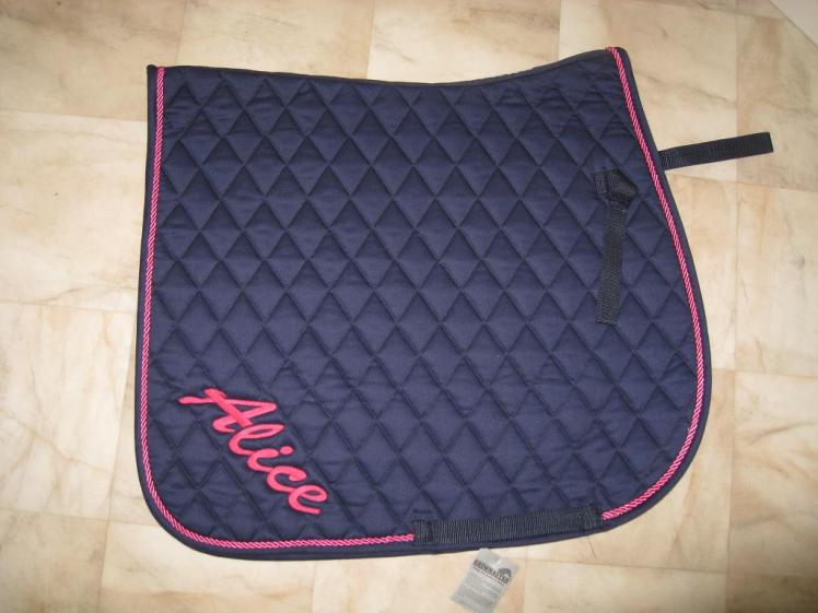 Ett urgulligt Lena Furberg-schabrak med Alice-brodyr på andra sidan. Namnbrodyrer är egentligen snyggast på schabrakets vänstersida, men jag ville så gärna ha det så jag struntade i det att texten blev på högersidan – eftersom vänstersidan redan var upptagen.