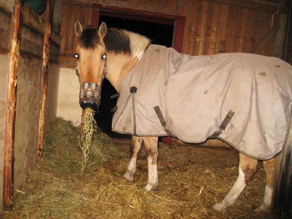 Finaste stumpisen – som ju står på box på nätterna nu när hon har lite fler sår att läka – mumsar på hösilage. Boxen är inte mockad eller halmad på bilden, ifall någon undrar.