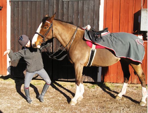 På bilden ser man ju inte att det är lite för långt, men… Hm… Jag får nog tränsa henne med det bettet en gång till för att verkligen se hur det sitter.