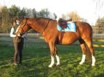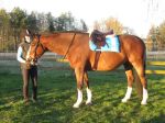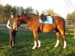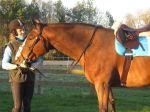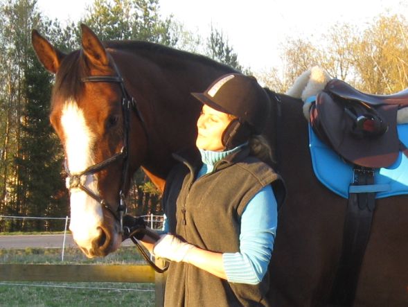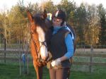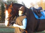 Vi matchar med turkos tröja och schabrak! Sedan matchar ju faktiskt mina svarta (melerade) ridbyxor med vita sömmar det svarta tränset med vita sömmar och vit dekorsöm.