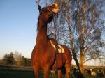 Hon sa också att skelettförändringarna förmodligen inte utgör något problem för henne och att det är mycket möjligt att de uppkommit vid trauma eftersom hon ju vid fyra års ålder hoppade upp i luften och föll bakåt så rygg, manke, hals och huvud fick sig ju rejäla smällar. Eftersom hon är unghäst så har hon ju vuxit sedan dess och då kan förändringarna ha uppstått. Hon tyckte inte att det skulle vara någon fara att ta föl på henne. Åtminstone något positivt.