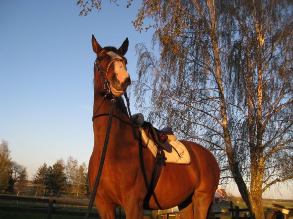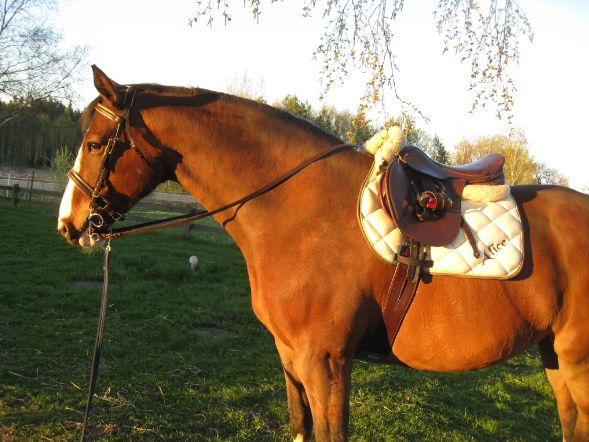 Hon sa också att skelettförändringarna förmodligen inte utgör något problem för henne och att det är mycket möjligt att de uppkommit vid trauma eftersom hon ju vid fyra års ålder hoppade upp i luften och föll bakåt så rygg, manke, hals och huvud fick sig ju rejäla smällar. Eftersom hon är unghäst så har hon ju vuxit sedan dess och då kan förändringarna ha uppstått. Hon tyckte inte att det skulle vara någon fara att ta föl på henne. Åtminstone något positivt.