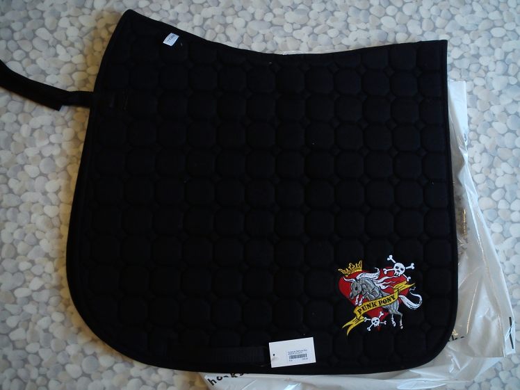 Det blev även ett Punk Pony-schabrak. Jag kunde inte låta bli! Jag tog ett svart dressyrschabrak i storlek full. Det var det enda som fanns kvar i storlek full, vad jag kunde se. Kanske att det fanns i ljusblått, men jag tittade inte så noga då jag ville ha det i svart. Hade nog egentligen tänkt att ta ett allroundschabrak, men det går bra med dressyr också.