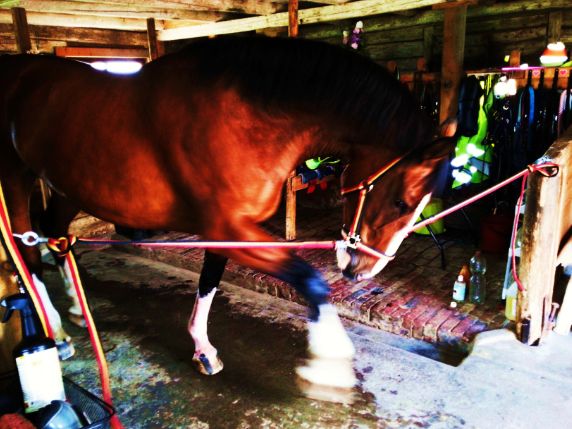 Häromdagen skruvade jag upp fler uppbindningsringar i stallet. Jag har sedan tidigare en uppbindningsring i varje box, men kände att jag vill ha möjlighet att binda upp med två grimskaft i dörröppningarna så att jag får fritt utrymme framifrån. Det blir bland annat lättare att behandla huvudet och ge medicin.