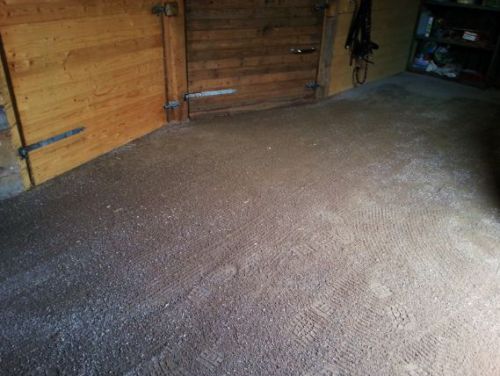Jag har ju skrivit om arbetet med att ändra och förbättra underlaget i boxarna, men jag har ju missat att skriva att jag även har förbättrat stallgolvet!