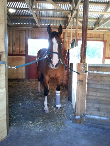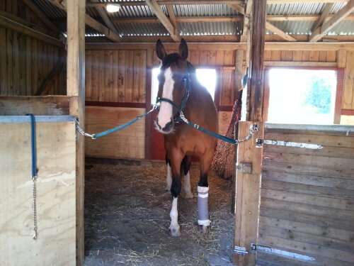 Igår hämtade vi hem min älskling från kliniken. Hon mår efter omständigheterna bra. Pigg, glad, ohalt i skritt, markerar lite i trav, feberfri. Imorgon gör jag det första bandagebytet. Det ska bli intressant att se hur det ser ut nu. De tog bort dränaget igår så det är ju trots allt två sår (med stygn, givetvis) kvar. Jag är rädd att det blir ytterligare en infektion då det för varje bakslag minskar chanserna för att allting ska läka som det ska. Hon får i alla fall fortfarande penicillin vilket jag ska spruta intramuskulärt i fem dagar.