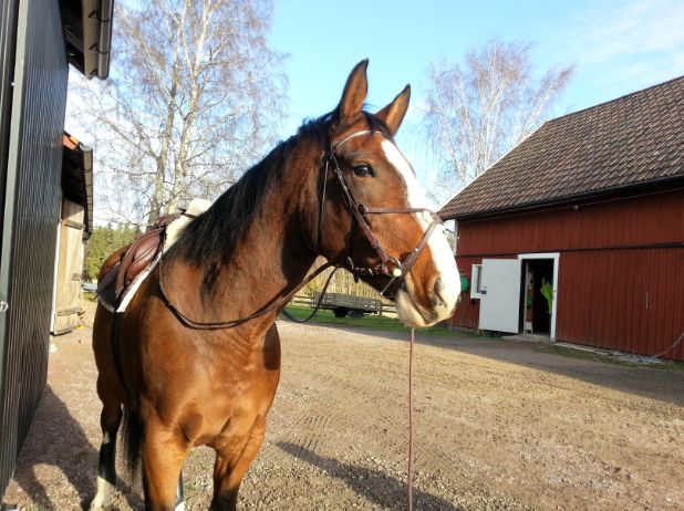 Red lite idag, men efter hennes skentur i fredags så ville jag ta det lugnt och ”kolla läget” så jag red i stora hagen (trots att underlaget var lite halt och ojämnt). På så vis skulle hon vara inhägnad hemmavid ifall jag skulle åka av igen – hahah! Men, idag skötte hon sig jättefint.