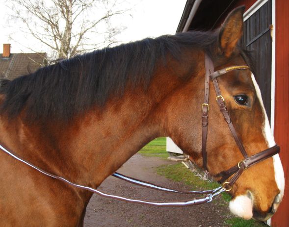 Jag testade det bettlösa tränset för första gången och det fungerade riktigt bra. Hon lyssnade på det även när hon busade och bråkade. En aning taskigare betsling blev det dock till dagens ridtur i form av ett pelham. Dock är det ju i alla fall ett böjligt syntet så det är åtminstone lite snällare (än ett helt i metall). Jag har dessutom ett kindkedjeskydd så att inte kedjan går direkt mot huden. Hur som helst så är hon ju inte sig själv nu och då väljer jag denna tillfälliga lösning av säkerhetsskäl för både hennes och min egen del!