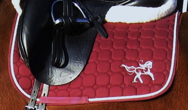 Damen fick ha fuchsiafärgat schabrak och lindor på sig idag. Schabraket har en fin Lena Furberg-häst broderat på ena sidan. Jag har ett sådant grått också eftersom jag tycker att de är så fina!