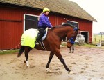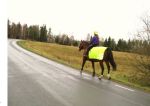 Men, det finns faktiskt en fördel: stora mängder regn = vattenansamlingar = perfekt att vattenträna hästarna i! Jag har inga nytagna foton eller videor från det att visa, men här är en liten ”rolig” snutt som jag filmade hösten 2011 som (liksom bilderna) visar den största vattenansamlingen vi har här i närheten att träna hästarna i. Klicka på länken så öppnas videon upp i ett nytt fönster.