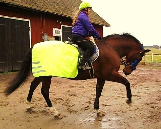 Rackarungen passade på att busa i början på tömkörningspasset genom att kicka, bocka och galoppera lite. Suck. Roligt att hon har roligt, men hon får inte ha SÅ roligt! Men, jag förstår henne – hon är ju så uttråkad. Det kändes idag på ridturen också då hon ville trava hela tiden på hemvägen och blev frustrerad för att hon inte fick. Enligt henne så är hon friskförklarad och det är dags för galopp och hopp. Hon förstår ju inte bättre, tyvärr.